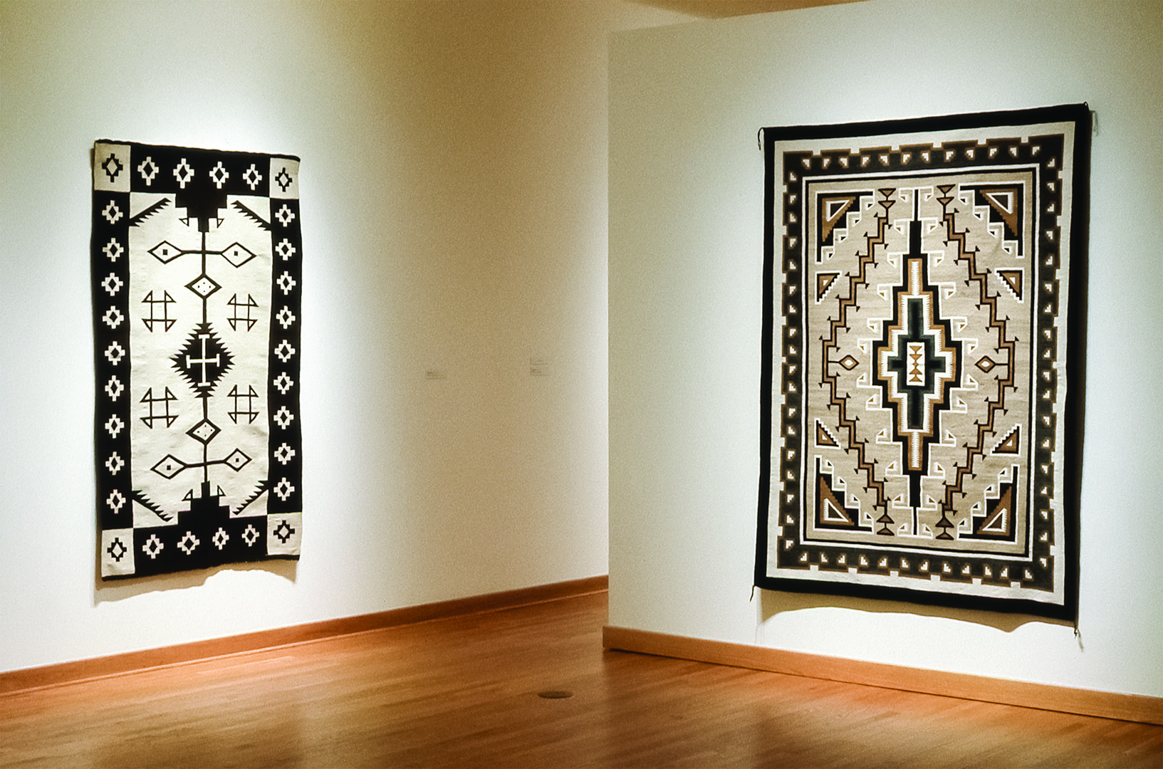 The multicultural climate of the 1980s focused greater attention on Navajo weaving as a symbol of cultural identity at the same time that native artists were taking their places among mainstream artists. Increasingly, weavers’ individual styles and contributions were recognized. One of the works in the exhibition was woven by a man, a relatively rare example.